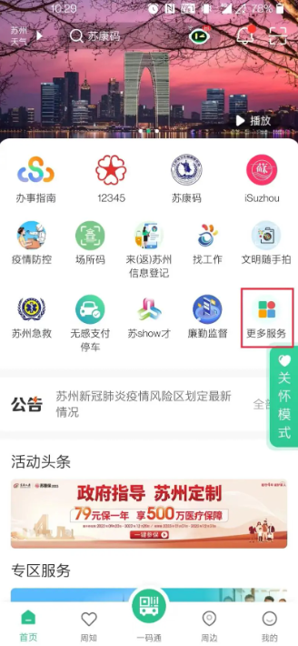 01打开苏周到APP,在首页点击“更多服务”