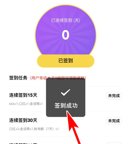 系统弹出【签到成功】的提示,即可完成每日签到任务。