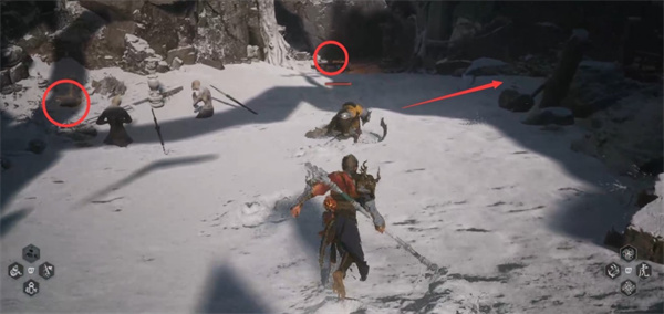 在土地庙后面有一条上雪坡,你会看到前方有两扇门,一个通向右边,另一个则通往左侧。你可以在左边的蒲团前坐下,并等待其他探险者到来,然后一起进入打坐状态。当所有玩家都准备好了之后,你可以开始寻找宝箱的位置。