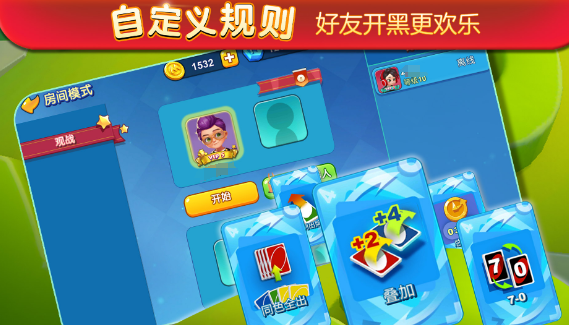 它结合了传统优诺玩法与创新元素,在经典模式和全球欢乐场中探索乐趣,同时提供专属小房间供好友开黑,每种游戏都有独特的卡牌技能,带来前所未有的体验感。玩家可根据个人喜好自定比赛规则,共享手里的牌,共同策略应对挑战。多元化的游戏机制确保了每个玩家都能找到适合自己的玩法,趣味无穷的体验让玩家们乐在其中。