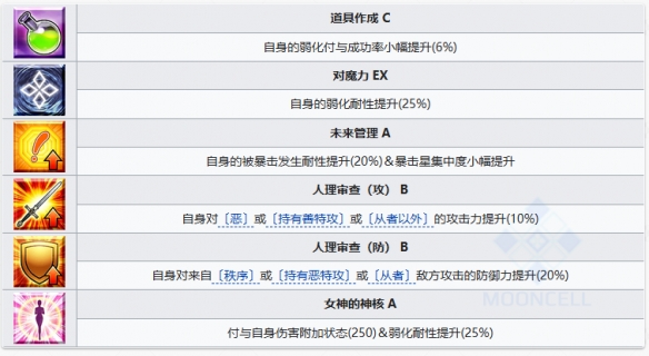 3.对Mooncancer攻击适性:自身对【Mooncancer】职介的攻击力提升20%~30%