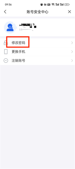 4、之后进入到账号安全中心的页面中有修改密码、更换手机、注销账号功能,我们点击【修改密码】;