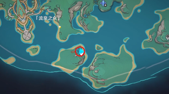 首先进入下图所示红圈位置,到达流泉之众的水池旁。