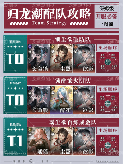 1.锁尘欲破防队欲影强大的聚怪和尘嚣单体破韧能力相得益彰,配合长命锁可以说是最强配队,没有之一。