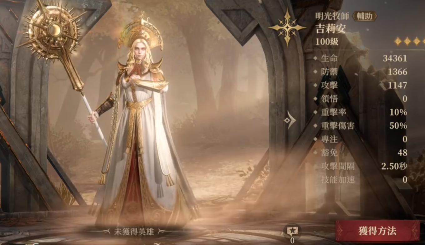 作为团队中的核心输出者和辅助,吉莉安以其卓越的能力协助队友,并掌管着增益治疗的效果,其中包括持续小恢复状态。她的被动技能允许她对生命值低于一半的队友进行治疗,并施加一个持续的小恢复效果。此外,神恩降临这个战技可以为团队中的低血量成员提供高额的治疗,并且还具有的伤害减免五秒buff。作为大招明光领域,它不仅能够给予全体队友最大hp值的治疗,还会使吉莉安领悟值系数提升,同时移除一个减益debuff并附加二级防御状态,为团队带来全面的加成。