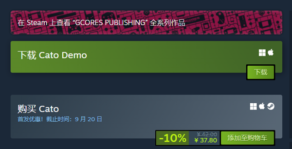 如果对Cato DEMO游戏感兴趣但尚未决定购买,可以点击Cato DEMO下方的下载链接进行试玩体验。