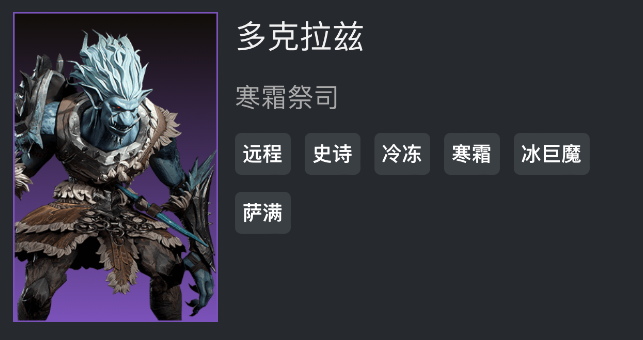 多克拉兹是魔兽世界中的一位史诗级远程输出角色,以其寒霜祭司之称号著称,他精通使用冰冻能力,并且作为寒霜羁绊的一员。威能技极寒雪球的释放会在敌人的周围投掷一个冰球,如果冰球范围内的敌人在这一范围内,那么他们将受到寒冷伤害。