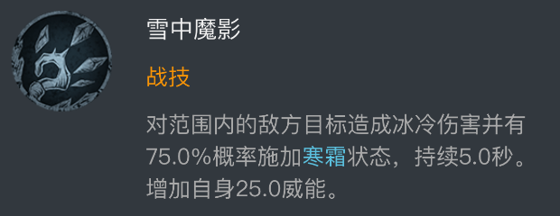 多克拉兹拥有强大的雪中魔影技能,它能在战斗过程中对周围敌人的身体造成冷酷的伤害,并且有百分之七十五的机会在完成施法后立即恢复一层寒霜状态持续五秒。这一特性使得多克拉兹在面对严寒环境或挑战时能够获得显著优势。