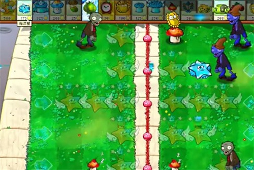 - 先在右侧种植一个寒冰星星,在下方种植两个辣椒菇。