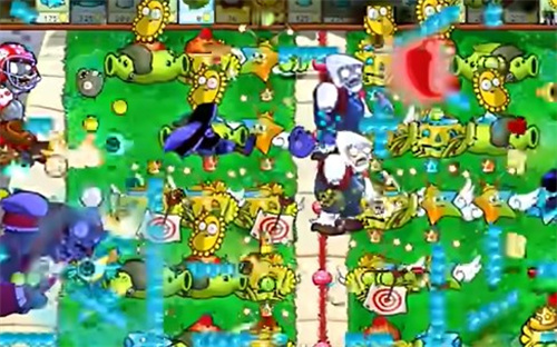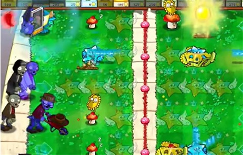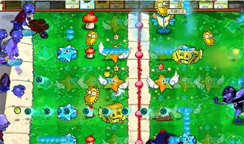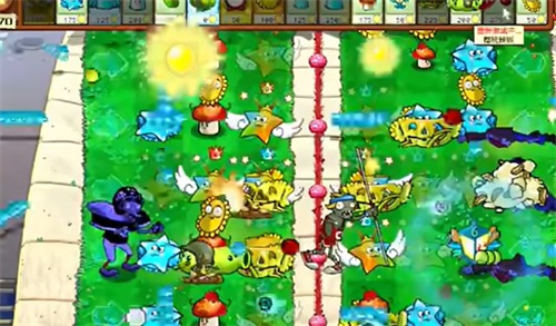 - 继续在中间的草坪上补充炫彩星星,同时种上阳光仙人掌。