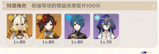 - 2版本起,特邀角色因「祝福等级」带来的增益效果将提升100%。