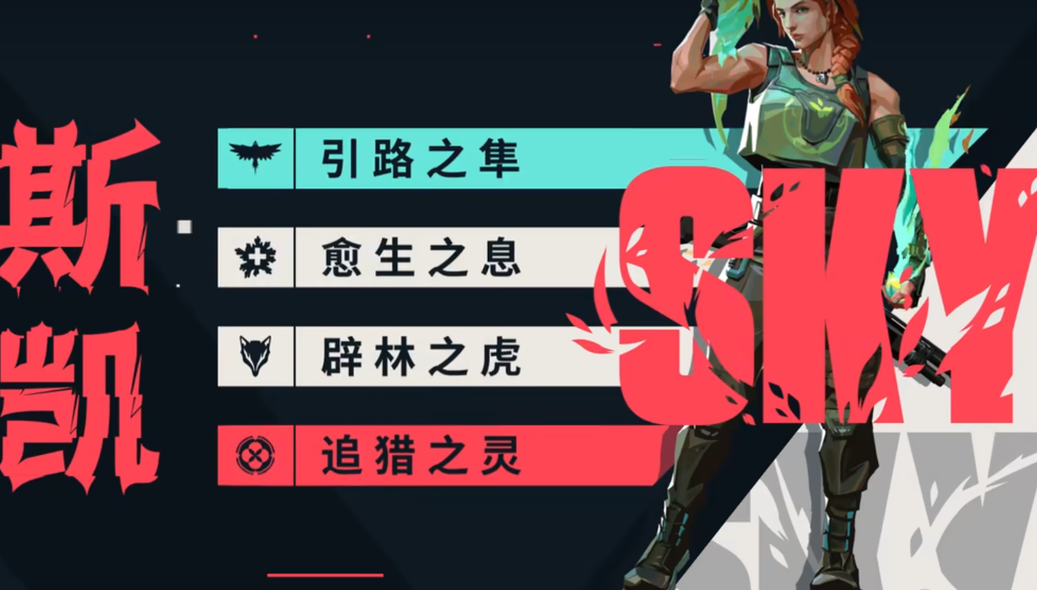 斯凯的引导之隼配备了飞鹰装饰品,点击即可放出飞鹰,长按可调整方向。到达目标后再次点击技能键可以将飞鹰变成闪光弹,对敌人致盲。她还装备了愈生之息治疗雕饰,使用时能对范围内的队友进行治疗,并在能量条未耗尽前重复施放此技能。值得注意的是,这个技能不能治疗自己。