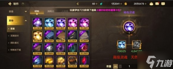 制作:点击打造-选择制作-选择其他-选择材料-选择稀有灵魂,然后点击制作,每个稀有灵魂需要高级灵魂和无色小晶块。
