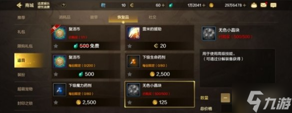 - 无色小晶块可以在商城花费125金币购买,每天可以购买500个。
