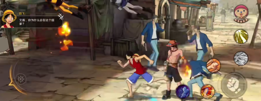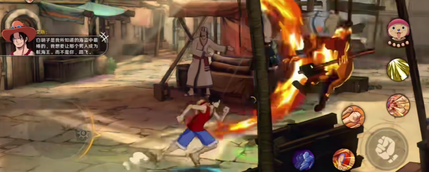 艾斯在航海王壮志雄心游戏中展示了与原作相似的技能展示,普通攻击能连续打出效果,并拥有强大的连续打击能力。战斗中,点击普攻次数与其技能展示的效果相关:可对敌人进行平推伤害;第攻击则会释放火枪。
