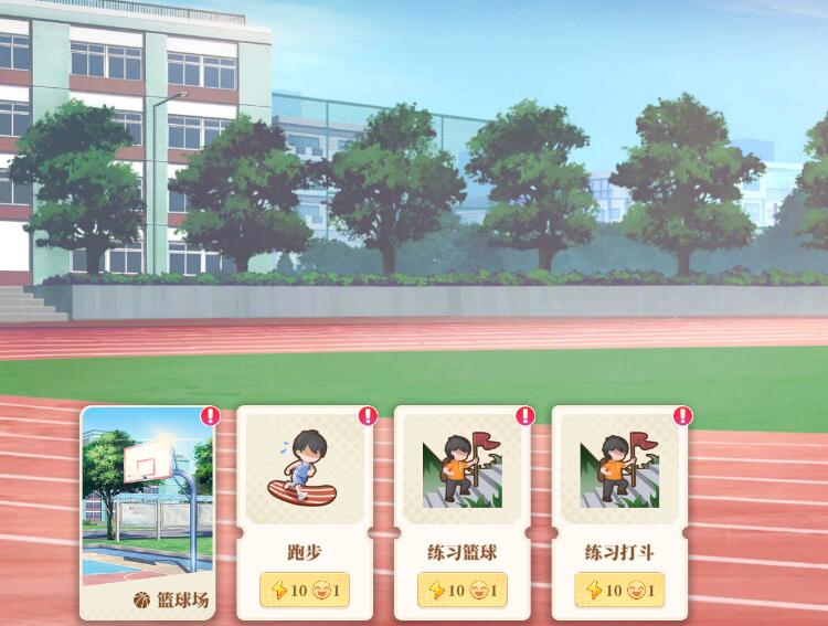 在日常游玩过程中,你可以通过消耗精力和心情值来学习或完成作业,这不仅能够提升你的成绩,还能增强你的语数英等科目的掌握程度。当科目学满后,你会进入一个玩小游戏的界面,挑战小游戏可以增加你的智力属性值。此外,你还可以通过提升智力属性来解锁方法论页面中的加点功能,选择增加学习效率的学习小组特性等等,进一步强化你的学习效果。除了玩游戏,你可以去操场进行各种运动锻炼,比如打篮球。在对方跳完之后蓄力投篮,并且光标要准确落在中间的绿色区域,成功投进五个球即可获得属性加成。这样的活动不仅有助于你提升体魄属性,还能增强你的身体素质和协调性。总的来说,无论是学习科目还是体育运动,都能在日常生活中让你更加全面的发展自己。