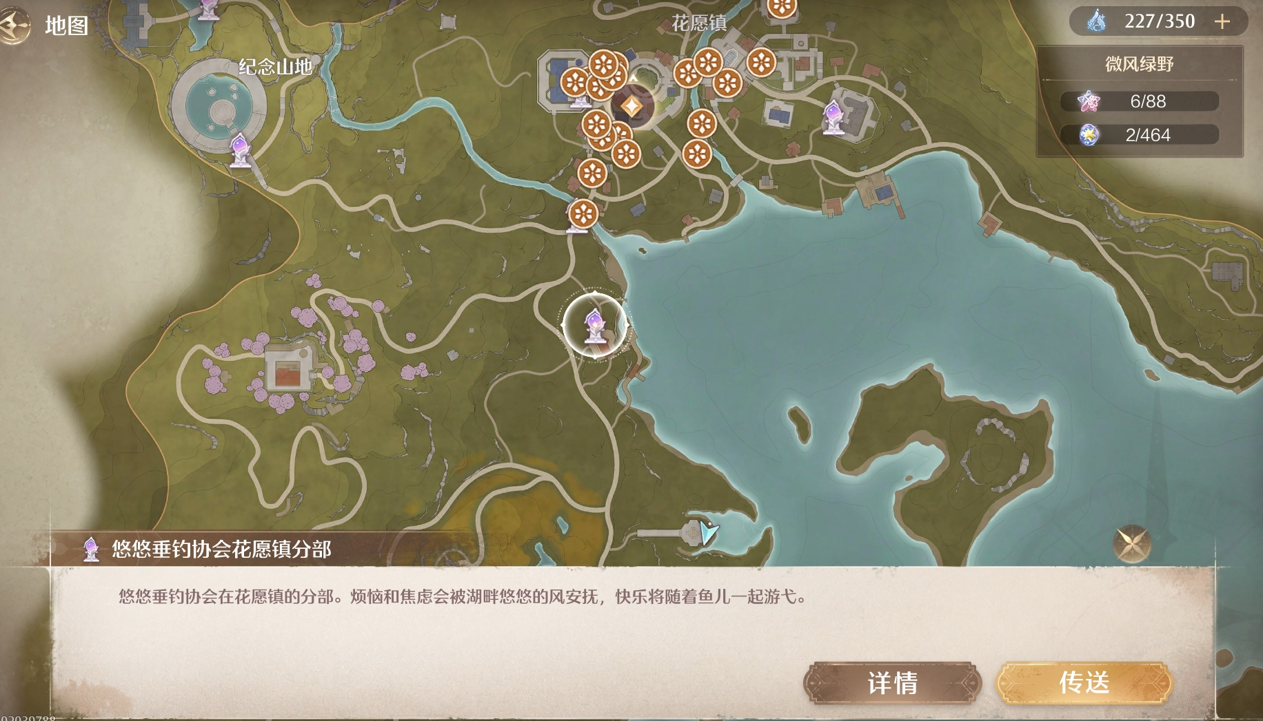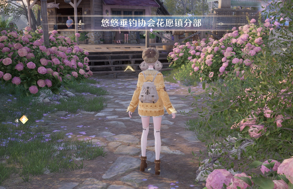 请在地图上查找钓鱼协会的位置。它位于花愿镇附近,通过心愿花街前行即可。由于所在位置较低,您可以轻松地穿越这段路程。