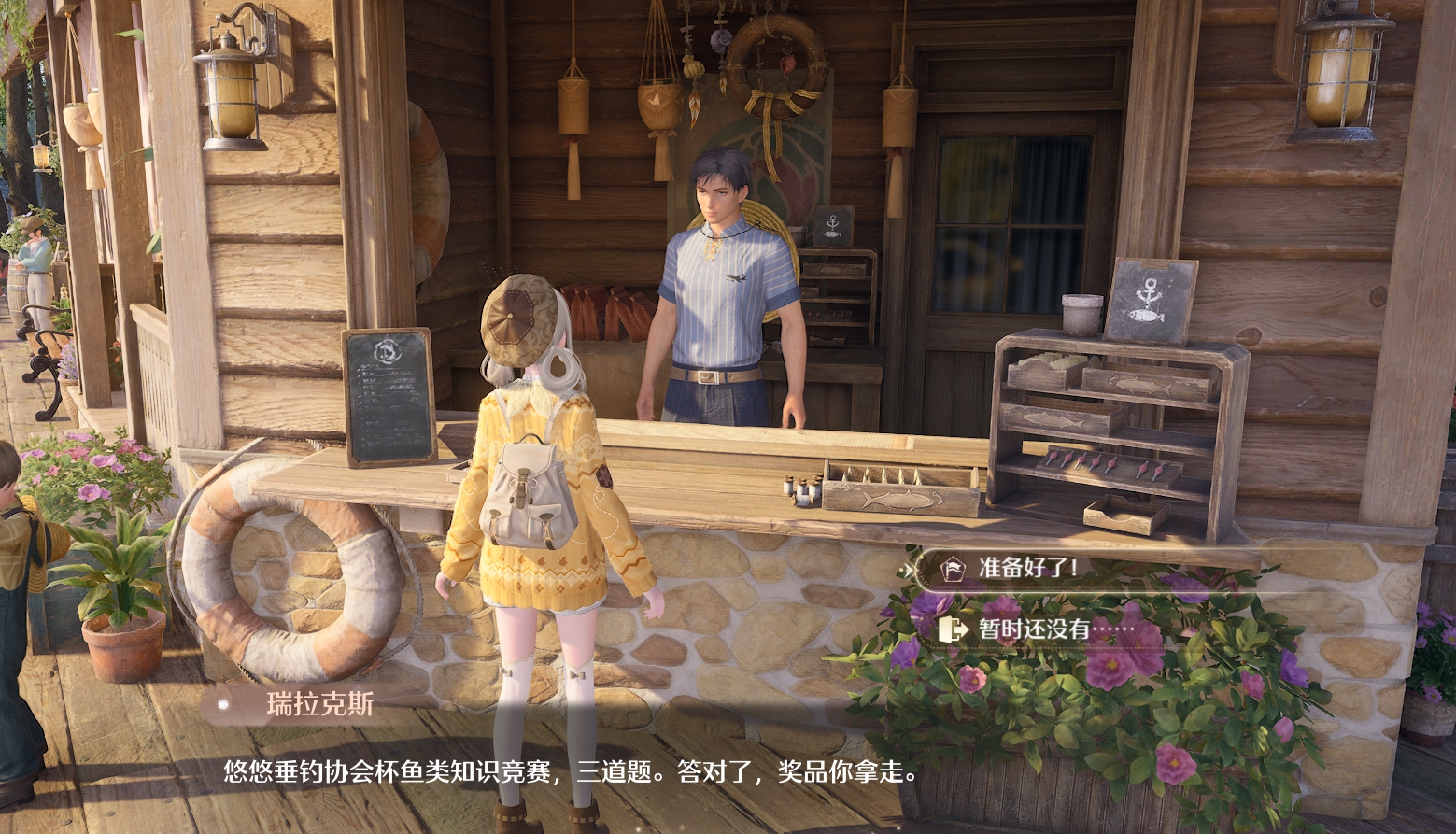 来到钓鱼协会吧!瑞拉克斯在这里等着你,你可以通过通话来参与鱼类知识竞赛。只需答对三道题目,就能获得奖励哦~所以如果你也想参加这个有趣的活动,请不要错过机会。以下是三个相关的第一题:能完成精致妆容的鱼是? 答案:笔刷鱼第二题:有八字胡的鱼是? 答案:胡子鲶鱼第三题:看上去像个小提包的鱼是? 答案:提包鱼