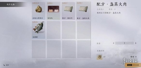 - 找到配方,兑换即可获得盏蒸大肉的配方。