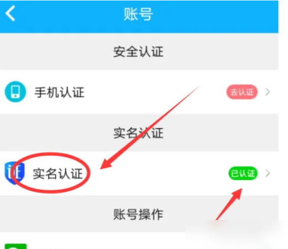 第三步:进入设置界面,选择【实名认证】去认证