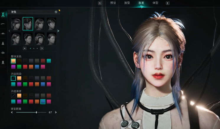 提升面部好看的秘诀在于控制眼部构造:在水平方向上保持在右、竖直方向在右,眼睛倾斜度为,大小可调至深度调整到并适当调整内外眼角。至于发型方面,小编推荐第一排第二个选项,它不仅百搭还能完成整体发色的调整和挑染。