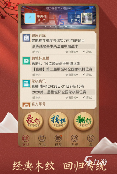 该游戏巧妙地结合了中国悠久的象棋文化元素,使得每一个玩家都能充分发挥自己的棋艺水平。独特的棋盘设计支持伸缩功能,无论视力如何,你都能清晰地看到棋局状况。为了提供一个公平公正的反馈机制,游戏特别设置了专业的棋力评测系统,让你能直观地了解自己的下棋技艺。同时,它还允许你在游戏中观看来自世界各地顶级象棋选手的比赛视频,从而不断拓宽你的视野并提升你的棋艺水平。