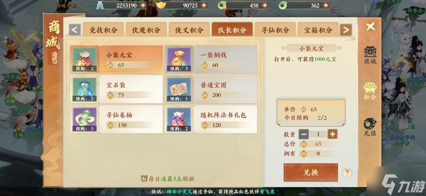侠义积分-通过帮助别人降妖、妖王、凶兽获取;