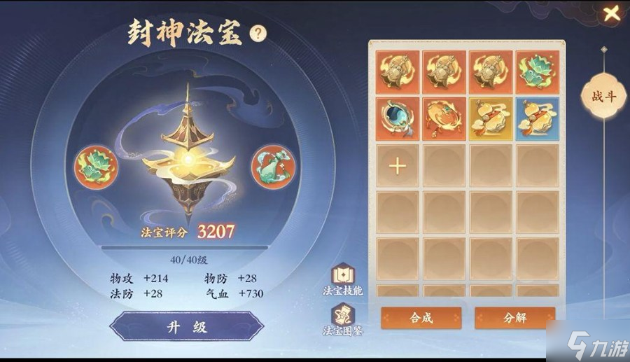 - 开放双法宝,大家选择好对应的法宝装备,提高人物属性