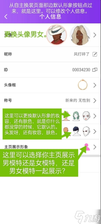 关于更改男女头像呀,还有看板的模特更改呀。默认形象的妆容,肤色更改都在这里。