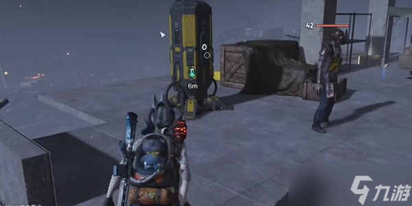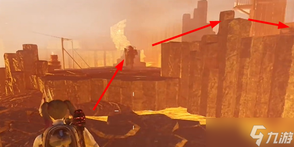 - 拿完箱子后,跳到围栏上往下看。这里有个空间锚点需要打开。