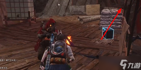 - 过木桥后,会看到很多的箱子,共有两个装备箱,三个武器箱。