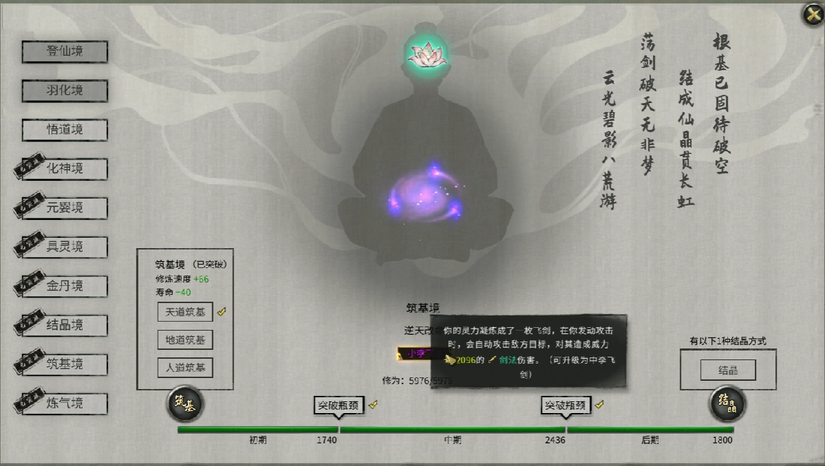 针对游戏中各种角色的职业设定,例如剑修和刀宗等,首要提升的就是装备的攻击力数值。比如,在“剑灵入门”这一词条里,能让你在游戏中召唤飞剑并自动对敌人进行攻击;而如果你是一名刀宗玩家,可以选择“刀魂精通”这个词条,它将使你的基础攻击力提高。