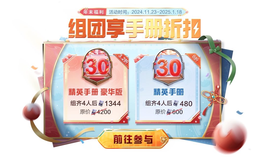 花一份的价格可以享受两份手册~同时,邀请好友来拼团有机会额外获得荣耀勋章~荣耀勋章可用于抽取最新的军需哟!
