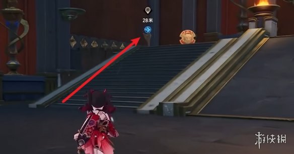 - 从楼梯上两层,打箭头处的球,就能打开门。