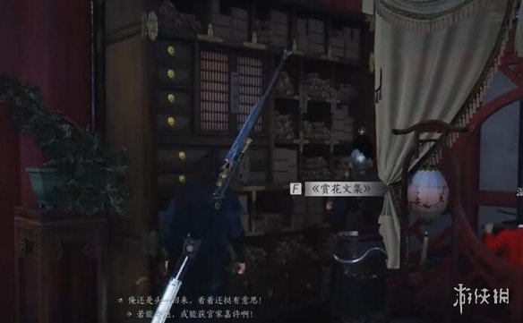 - 前往右边亭子尽头的南边屋子,靠近书架获得赏花文集。