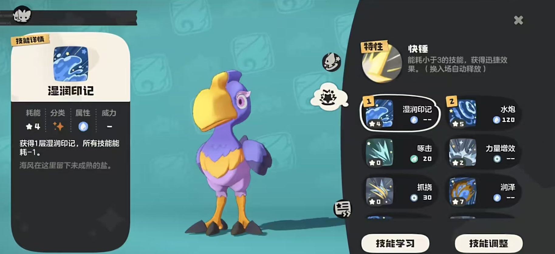 既然具备了这样显著的特性,大家应当有意图地搭配一些能量消耗少于能量消耗。接下来,让我们来看看这些技能中有哪些是能耗小于:- 啄击:造成两连击物理伤害。 - 力量增效:提升自身物理攻击属性。 - 抓挠:造成物伤,自身获得量。 - 挤水:造成魔伤,同时获得量。 - 防御:减少受到的物理伤害。 - 乘风:速度提高,对防御技能无影响。接下来是具有较高能耗但不高于能量消耗:- 蓄水:随机选择一个技能,能量消耗降低。 - 魔能爆:将所有能量全部消耗掉,能量消耗越多造成伤害越高。