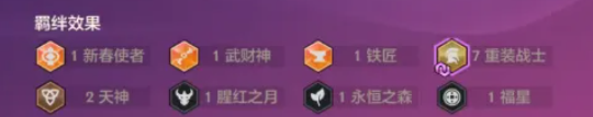 - 春使者、1武财神、1铁匠、8重装、2天神