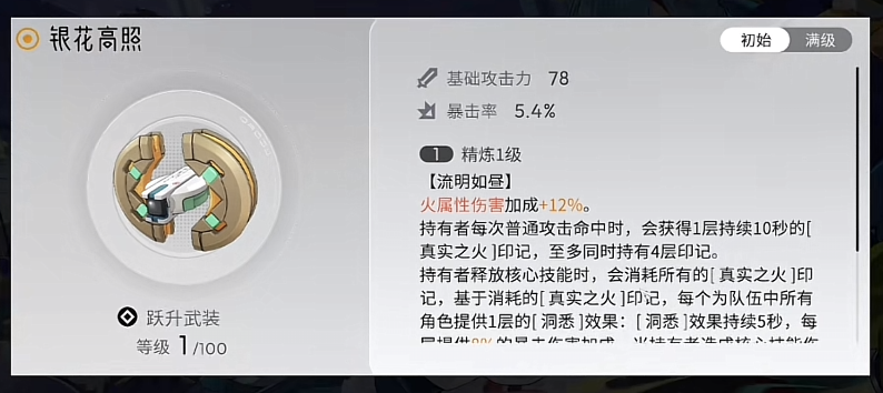 在武装上,小编推荐大家选用银花高照。它不仅能显著提升青乌的攻击力和暴击率,特别是青乌是依靠强大的攻击与暴击能力横扫战场的最佳选择。这款武器还巧妙地契合了青乌火属性的特点,通过普攻即可完美发挥其效果。
