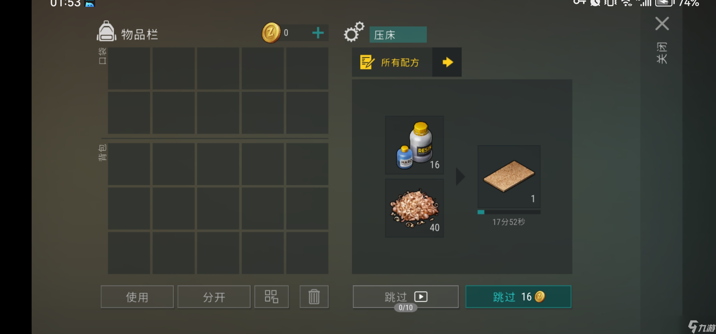 压床制作压合板需要用水,解锁顺序为螺丝、铁片,最后才是压合板。这工作量大,不建议放在日常生产中,而应作为副产品处理。