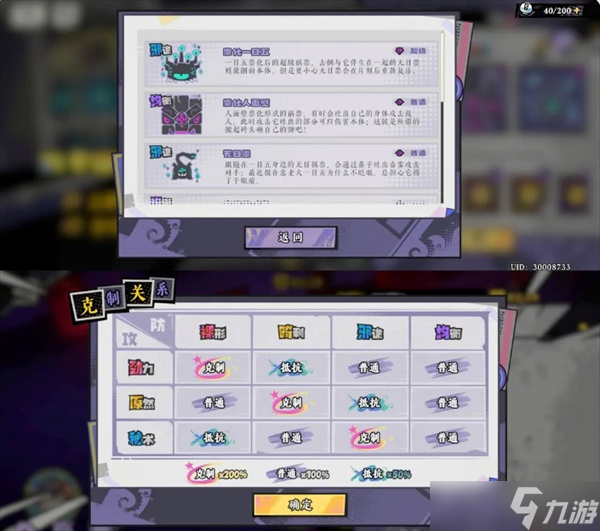 查看色彩时,红色对红色,蓝色对蓝色,金色对金色;而紫色则无克制关系。在战斗中,运用正确的配色能事半功倍,面对困难的情况可借助相应的颜色进行辅助。