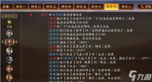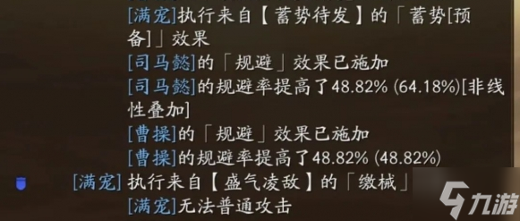 细节二:夏侯拥有战法闪避,但不会触发伤害,这是一个BUG;然而众动、万计与气凌三军仍能发动反击,如图所示。