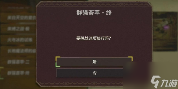 - 选择【群强荟萃终】然后与图示NPC对话开启挑战;