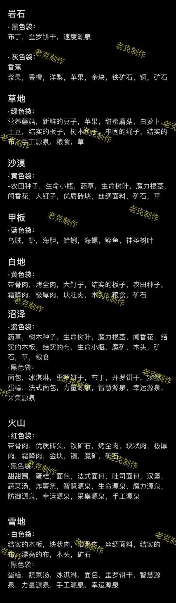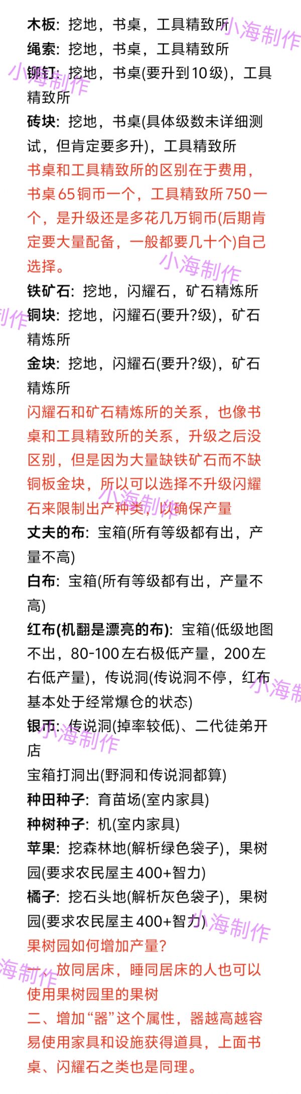 - 上5种基础资源都可以挖地然后获得袋子解析产出,具体如下图