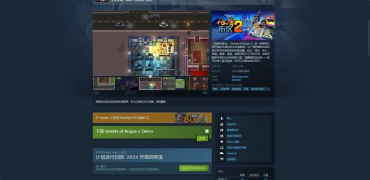《地痞街区2(Streets of Rogue 2)》目前仅在Steam平台上线,Steam版上架发布时间为2024年的冬季,也就是今年的十二月和明年二月左右。