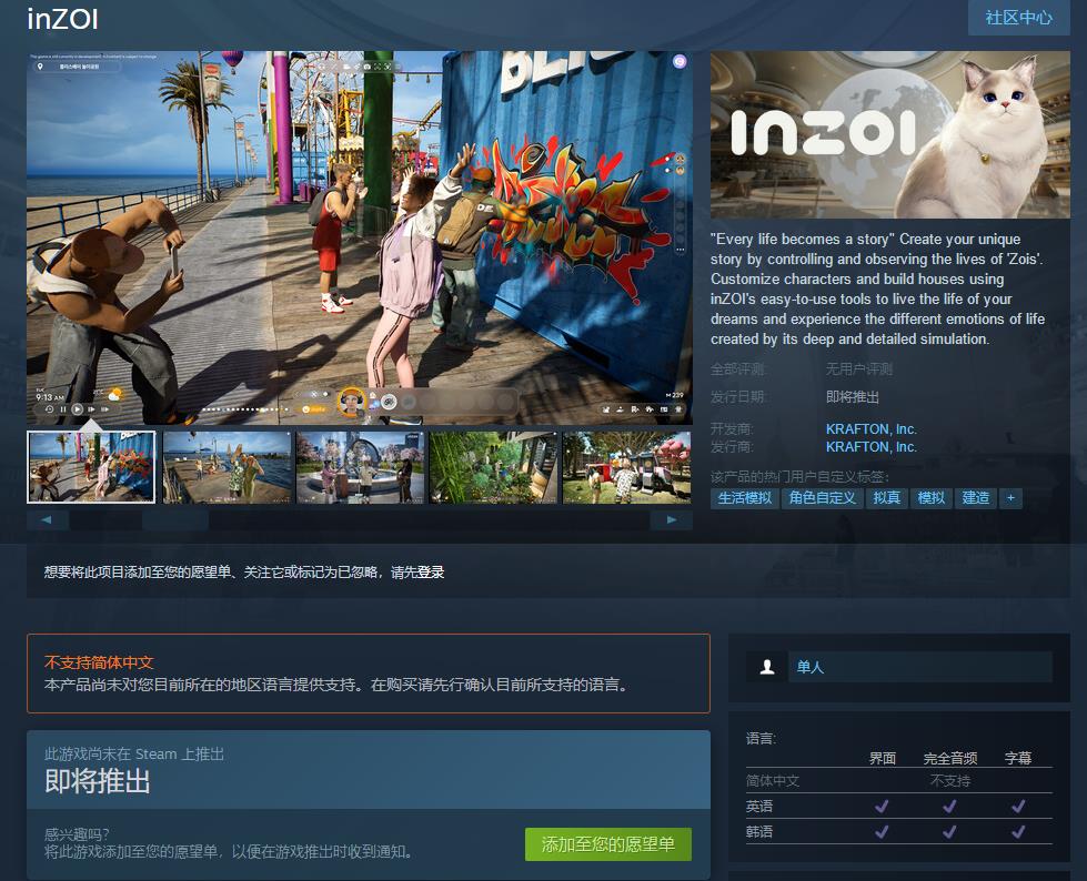 Inzoi是由韩国知名游戏公司KRAFTON开发的模拟人生类型的游戏,自发布以来以其丰富多样的玩法和细腻的画面受到了广泛的好评,并迅速成为同类游戏中表现最为出色的黑马之一。在这款游戏中,玩家可以通过角色创建、社交互动、职业发展以及家庭建设等核心功能体验到丰富的模拟生活体验。每一个小的选择都可能对游戏的进程产生重要影响,而制定合适的策略是成功的关键所在。如果你正在寻找一款能够全面展现模拟人生乐趣的游戏,Inzoi绝对值得一试。