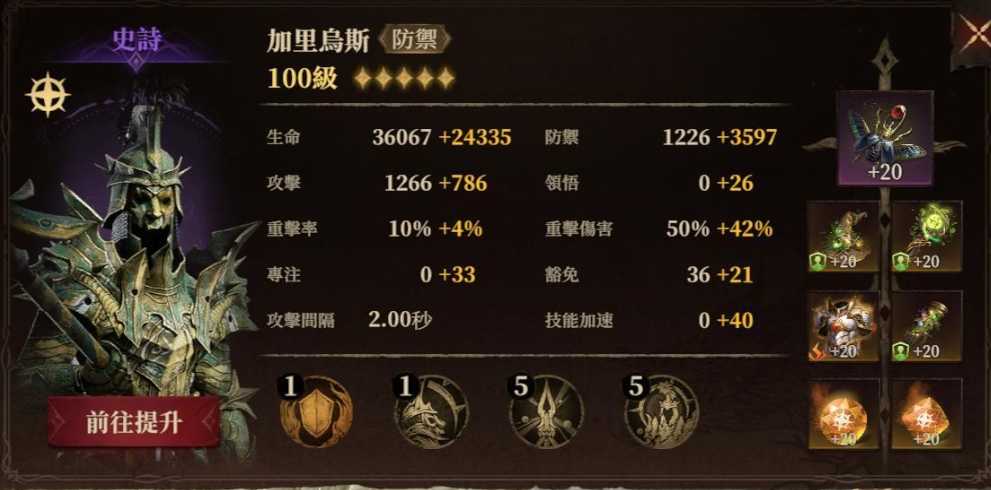 奥斯特在这里主要承担输出的职责,由于缺少强力的寒霜属性角色,所以奥斯特这里装备应尽量多提升一下,把专注值提高到至少达到250,这样可以确保输出并增加重击和重伤的效果的效果。