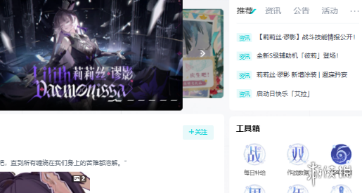- 跳转界面后就能查看工具箱、推荐、公告活动以及攻略等内容。