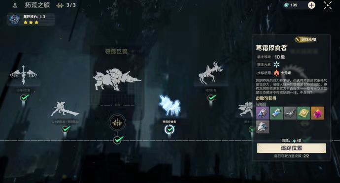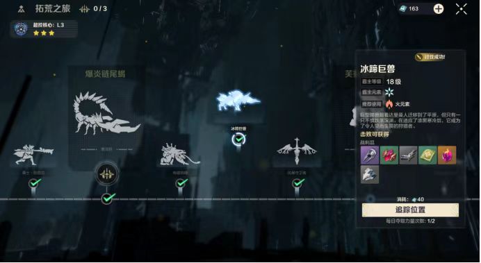 首先介绍的是新手玩家最怕的“阴影冰蹄巨兽”。很多拓荒者在游戏中的第一次失败就是在对战中遭遇它的时候。冰蹄巨兽非常好斗,只要目标进入它的攻击范围内,它就会立即发起进攻。它的攻击范围非常广泛,并且目标切换速度很快,可以使用多种技能对玩家造成伤害。此外,它也没有明显的弱点。但是,通过频繁发起攻击并在其目标切换时发动攻击,再加上属性克制,你可以慢慢消耗掉它。