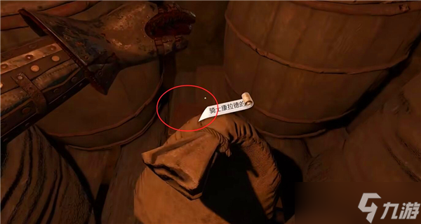 当你移动面粉袋时,在两桶之间找到一本日记本,并记得它的位置。这本日记对完成任务非常关键,因为里面包含着你所需的线索。