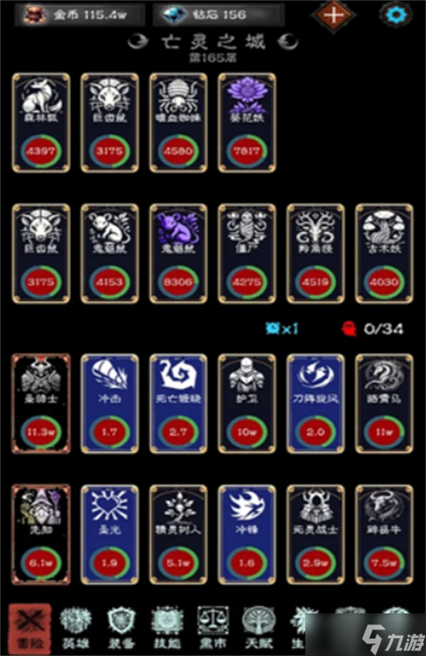 怪物技能是随机的,如果刷到“缠绕”技能,前排容易暴毙!